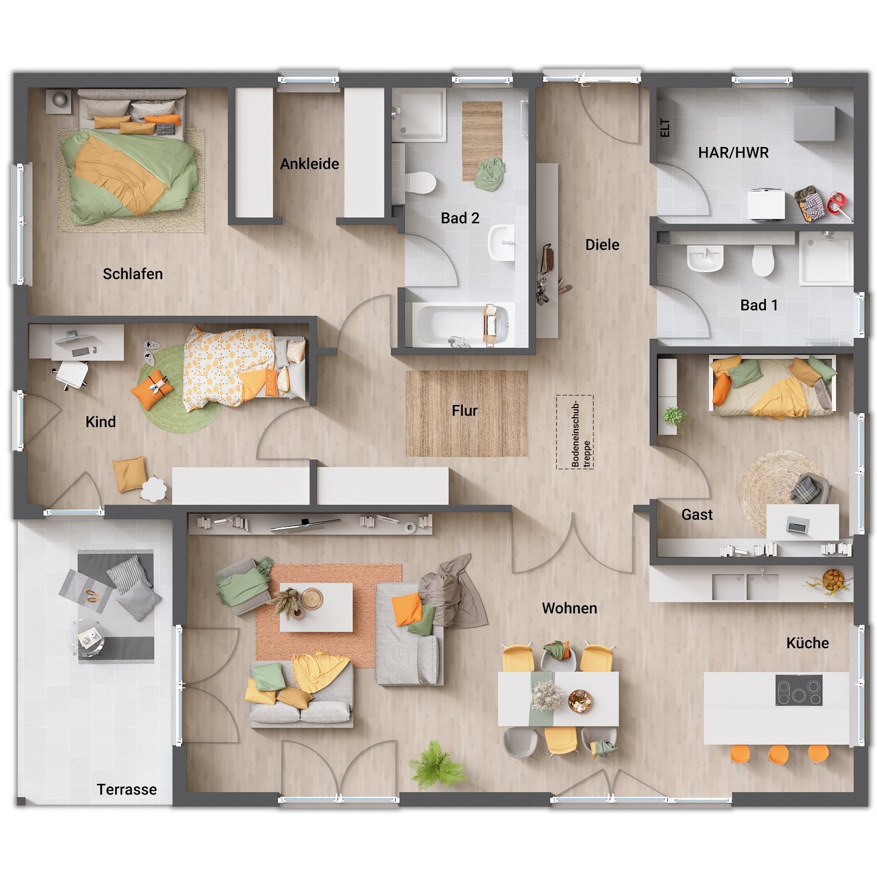 - großzügiger Elternbereich mit Ankleide und Bad