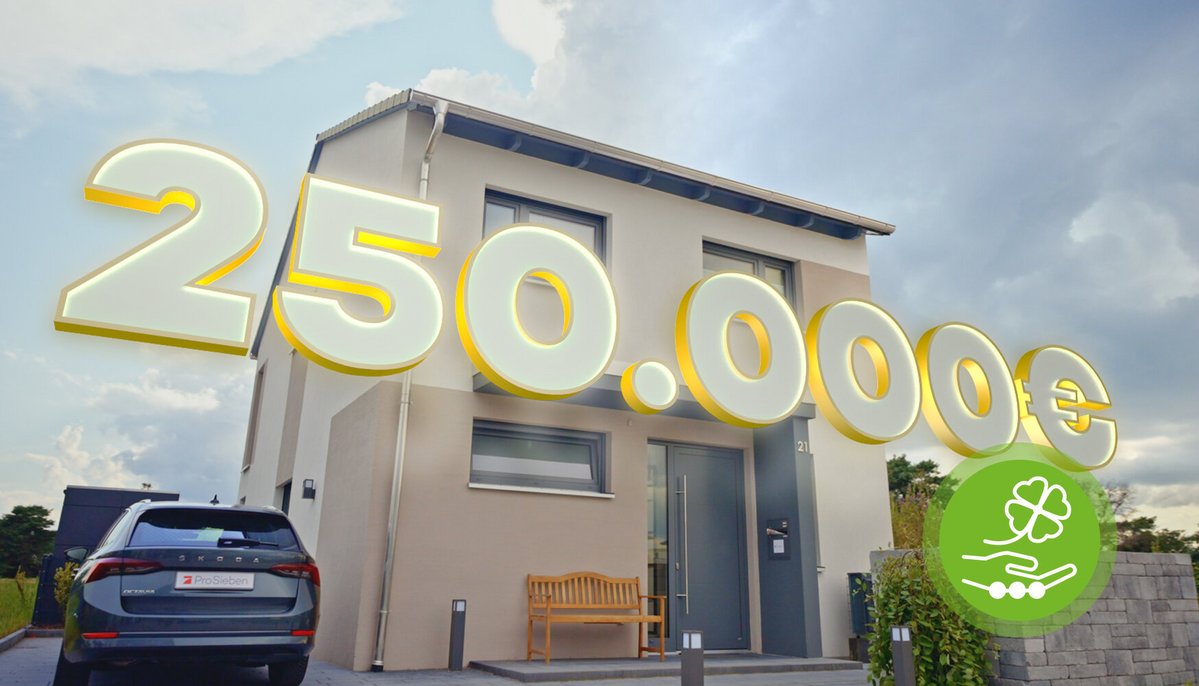 Endlich raus aus der viel zu kleinen Mietwohnung und sich mit einem eigenen Haus einen Lebenstraum erfüllen – das wünschen sich viele! SAT.1, PROSIEBEN und KABEL EINS, in Kooperation mit dem Massivhausanbieter Town & Country Haus, machen diesen Wunsch wahr. Wer am Gewinnspiel teilnimmt, kann ein Massivhaus im Wert von 250.000 Euro gewinnen oder sich über 250.000 Euro in bar freuen!